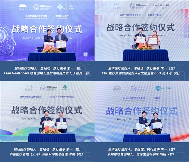 启研医疗创始人、总经理、执行董事 朱一 CBC医疗集团联合创始人亚太区运营CEO 周泽洋 GMG寰球抗衰老品牌创始人&CEO 刘金龙 启研干细胞抗衰老医院国际院长 荒木英世 未知君联合创始人,首席生信科学家 胡函 Clan Healthcare 联合创始人及战略项目负责人 于德勇 (由左至右) 会议中,多位行业领军人也深入剖析了从业者面临的几大痛点:一是疾病前期干预如何突破传统治疗效果验证技术的局限性,真正解决客户的质疑;二是如何在合规前提下实现新科技的实效落地。此外,论坛也前瞻性地讨论了数字化转型对传统经验模式的冲击。启研医疗总经理朱一先生表达了对AI及“数字生命”体系崛起的深度思考。他认为,AI的出现可能会打破过往高度依赖个人经验的诊疗逻辑,产生前所未有的“技术焦虑”,但这也倒逼行业必须告别零散干预,向数字化、精准化的管理体系升级。 会议达成共识:面对2026年的重重挑战,行业应整合各方资源,构建数据驱动的干预逻辑,共同推动产业回归专业与价值本质。 强强战略联手,拓展医疗服务边界 在实现技术跨越与服务升级的征途中,启研医疗在本次盛会上迈出了坚实一步,正式与来自中国、美国、英国、德国的四家全球顶尖科研机构达成战略合作。通过整合英国Clan Healthcare、德国CBC医疗集团、美国Draco Natural Products及未知君的国际化科研力量,启研医疗将深度布局精准营养干预、细胞代谢管理、植物活性成分应用及肠道微生态预防等前沿领域。这一系列强强联手,标志着启研医疗正通过链接全球顶尖的研发智慧,构建起一套从底层科研到临床应用的闭环体系,致力于将世界级的增龄医学方案转化为守护中国居民健康的实效路径。